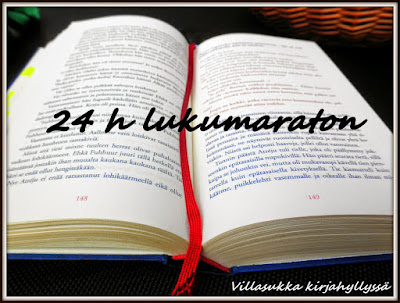 Kesäloman alkuun vapautui sopivasti lukumaratonin mentävä aukko, joten päätin tarttua tilaisuuteen ja keräsin kotoa ja kirjastosta pinon potentiaalista luettavaa maratonille. Aloitan lukemisen keskiyöllä ja jatkan koko vuorokauden, mutta pidän taukoja ja myös nukun välillä. Tarkoitus on myös päivittää tätä postausta lukumaratonin aikana. Kirja (kohta) käteen ja lukemaan.